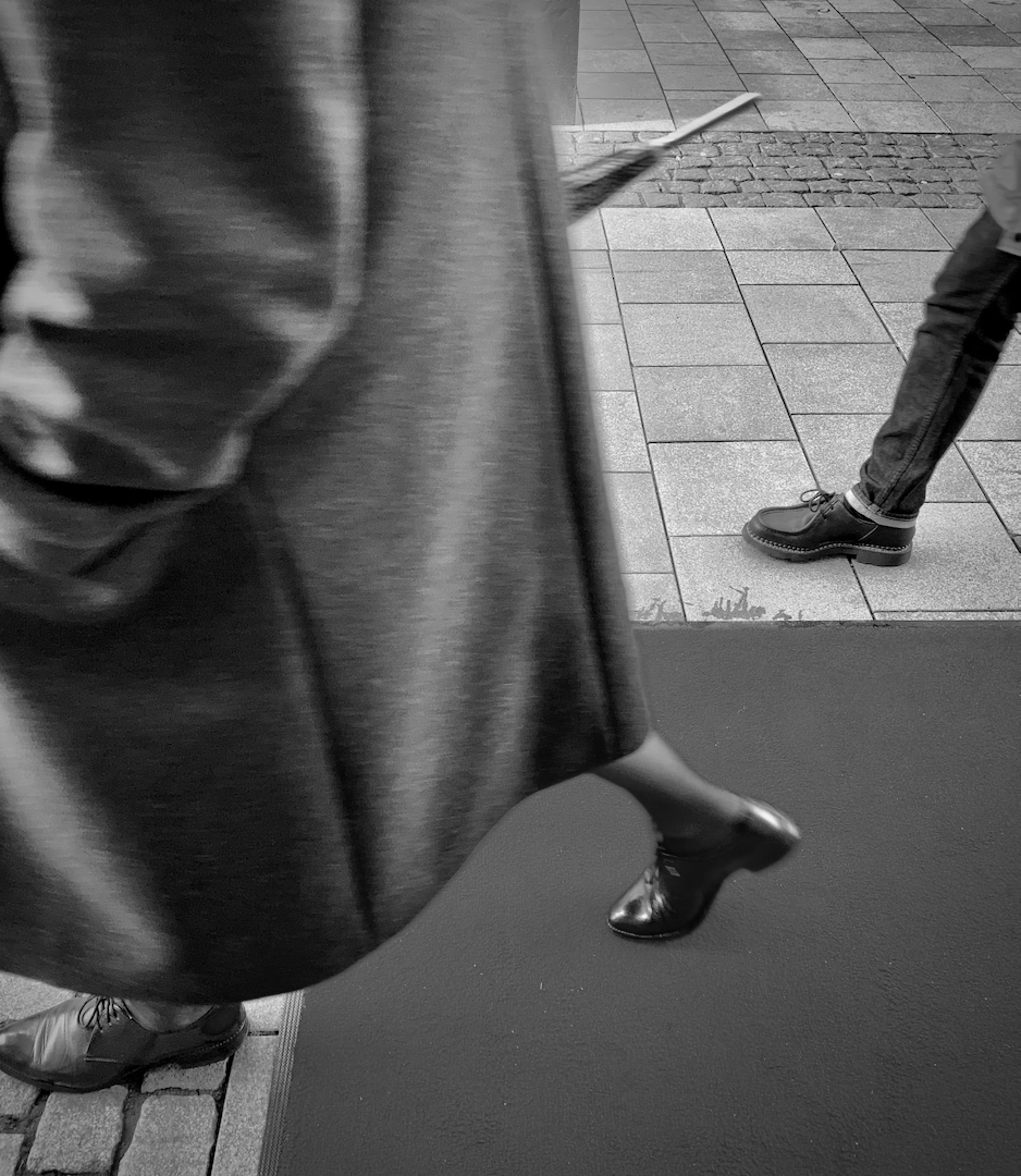Inte ett självklart Halmstadsmotiv, men en väldigt bra bild med fart. Tre fötter med lite olika stil. Paraplyet är pricken över i