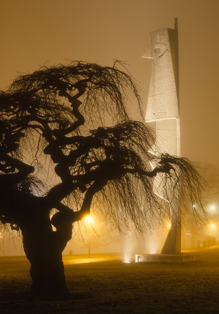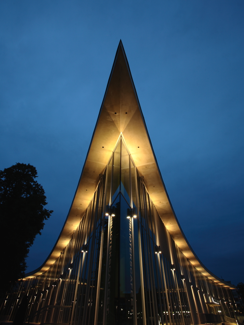 En spännande komposition av ett imponerande byggnadsverk. Fotografen har tagit vara på både ljus och perspektiv. Bra balans mot himlen. Trädet bryter symmetrin på ett bra sätt.