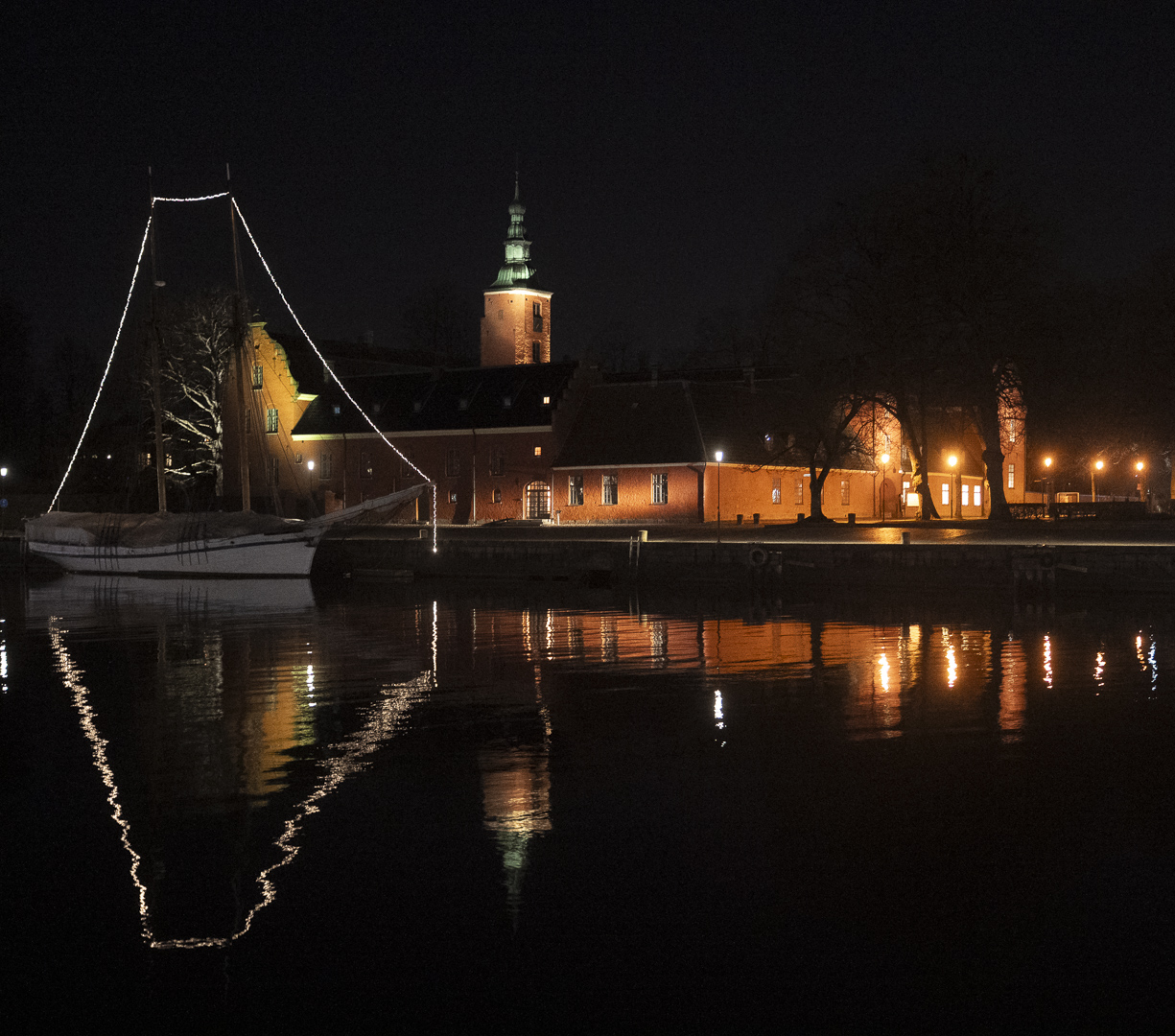 Halmstad slott, väldigt karaktäristiskt. Kyrkan i bakgrunden och båten i förgrunden gör sitt till.